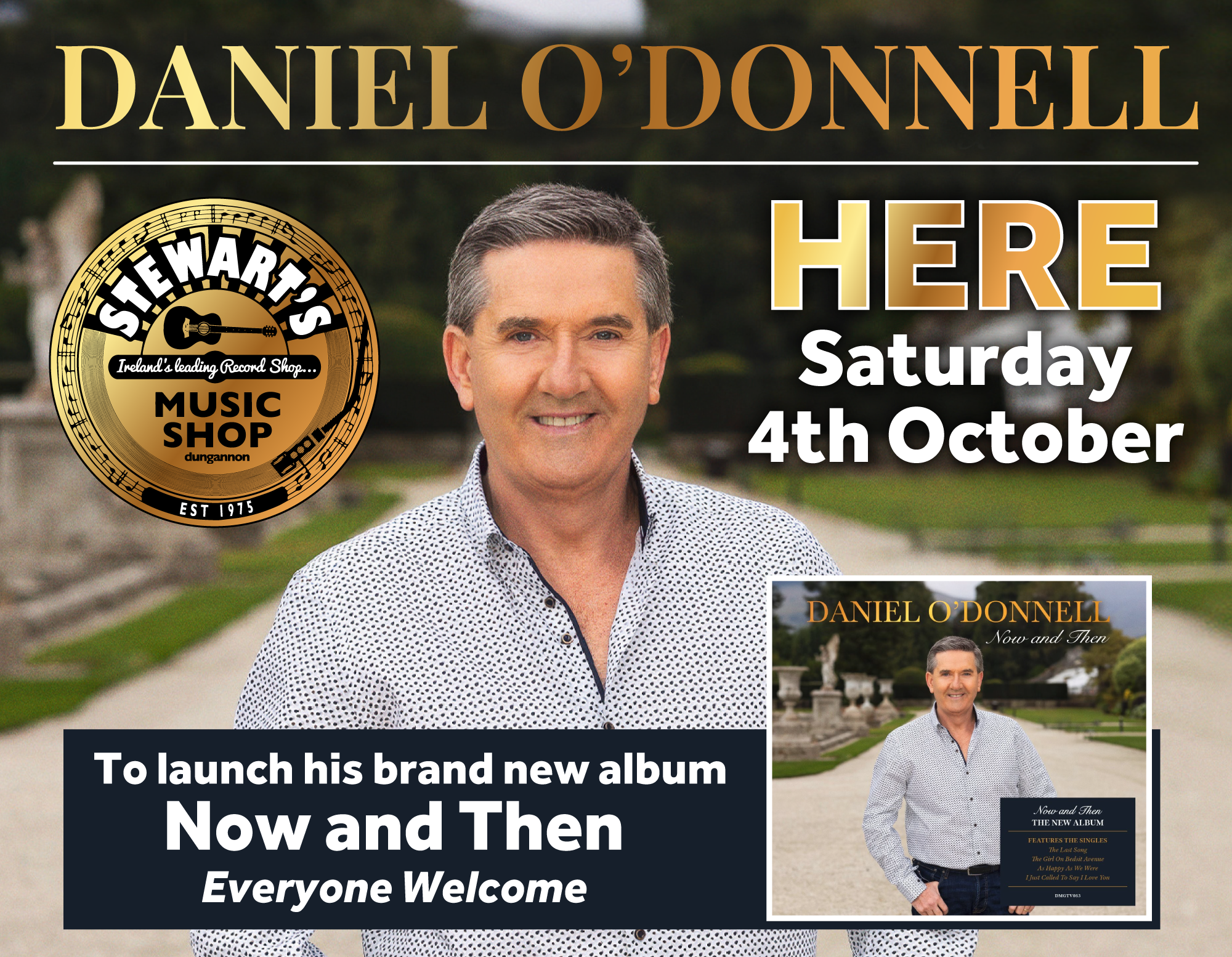 We’re thrilled to announce that Daniel O’Donnell will be joining us at Stewart’s Music Shop on Saturday 4th October for a very special signing event. Daniel will be meeting fans and signing copies of his brand-new album ‘Now and Then’.